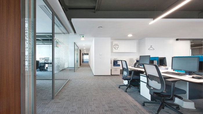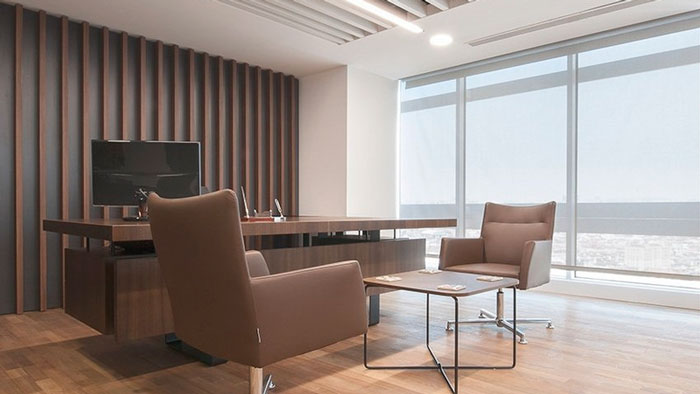 辦公區(qū)域的設(shè)計:整個空間給人的第一感覺就是大氣,這也是設(shè)計師對金融辦公室的第一印象,在設(shè)計師眼中金融一定與錢有關(guān),也只有這樣的格局才能彰顯企業(yè)的實力,如此一來才能取得客戶的信任,同時大氣、簡單的空間,也讓員工的辦事效率如魚得水。
