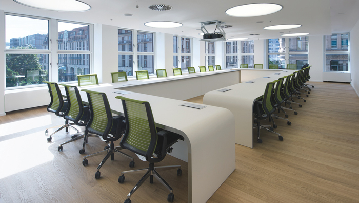交流區域的設計:此處不僅可供內部員工之間的相互交流,同時也可供與顧客之間的交流,在此次明亮是給人的第一感覺,在設計師的眼中,交流成功的前提就是有一個優質的交流區域,在這里陽光射入室內,讓一切都是那么的開放與和諧。