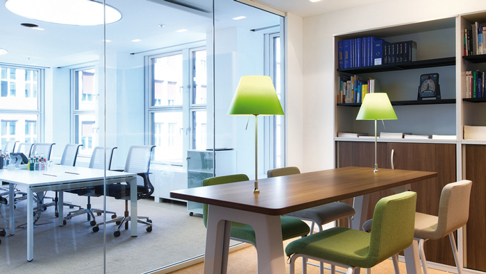 會議室的設計:此處可以容納將近30個人,在這里開放是空間的主旋律,在這里員工感受到的是一種輕快之感,這也是設計師希望看到的,在設計師看來一個輕快的會議空間,可以在無形中化解對于員工的壓力,讓員工可以在這里的空間中得以自由發揮。