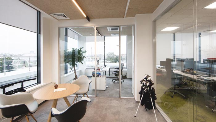 窗戶區域的設計:此處也是設計師的突發奇想,設計師在設計此處的時候,總感覺此次應該利用起來,最后設計師在其他辦公室中取得靈感,故此打造了此處休息區域,設計師希望員工可以在這里曬曬陽光,可以在這里觀賞外界的風景,讓空間每一處都充滿靈感。