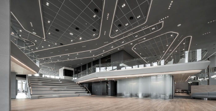 使用的材料是一個巨大的黑色未經拋光的大理石,用高低浮雕技術雕刻,以創造尺寸、燈光和陰影效果,但反映了當代的設計。從企業來說,公司在某種程度上是獨一無二的。因此,設計一直伴隨著溫暖,舒適,住宅的感覺。有幾個接待區,22個座位的家庭餐廳,40個座位的行政會議室,以及最高行政辦公室。所有這些使得這個地方不僅僅是一個辦公室。
