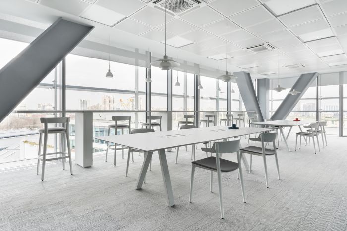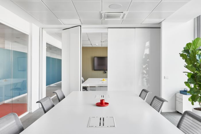 設(shè)計(jì)師在新的辦公室中劃分了包括用于非正式會(huì)議的工 作區(qū)、配備視頻會(huì)議的會(huì)議室。獨(dú)立會(huì)議室、項(xiàng)目室、圖書(shū)館和專(zhuān)門(mén)用于一對(duì)一會(huì)議和重點(diǎn)活動(dòng)的空間。