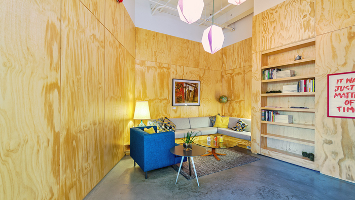 進門區域的設計:此次設計師采用了去前臺的設計手法,這樣設計的好處就是可以拉近彼此之間的關系,在設計師看來隨著時代的發展,很多新興行業的辦公室都需要進行重新斟酌,以此才能打造出適合企業發展的辦公空間,此處就是設計師根據企業的屬性進行的改變與創新。