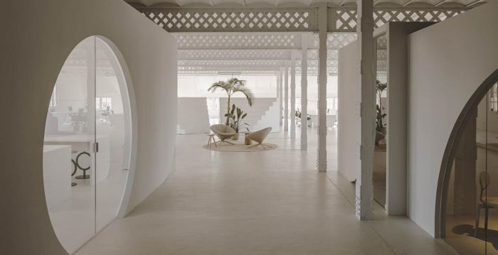 封閉的空間是以微結構的形式構想出來的,它相互作用,并創造了一條雕塑通道。圓形的開口會產生門窗,讓光線循環起來,喚起藝術和創造的世界。每個模塊都被認為是一個小雕塑,同時在構成上與其他房間相關。