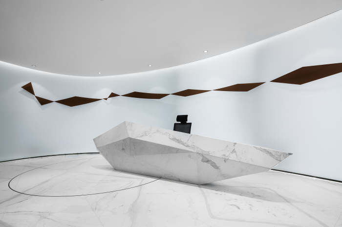 設計師在設計辦公空間時,不僅要考慮使用、功能、視覺、風格和儲物等方面,還需要考慮人與人之間的溝通便捷和高效的管理。設計師運用了影視的膠片形式和蒙太奇的片段組合,將空間打造成一個包容接納創新的地方。金屬制作的明確醒目標識體現了堅實的基礎和輕盈的手法。