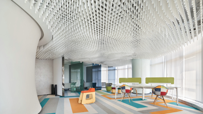空間設計需要考慮到人與人之間的相對獨立和中間的溝通平臺設計,以使之高效。同時,也要設計多個員工交流的空間,讓員工們在換個環境中舒緩壓力,調整情緒,提升整體效率。