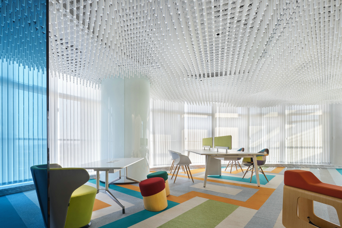 設計師在空間中還設計了很多供大家快速溝通的環境和位置,讓溝通便捷輕松。這樣的設計旨在讓員工在無壓力的狀態下,更好地釋放創意靈魂,提高創造力。