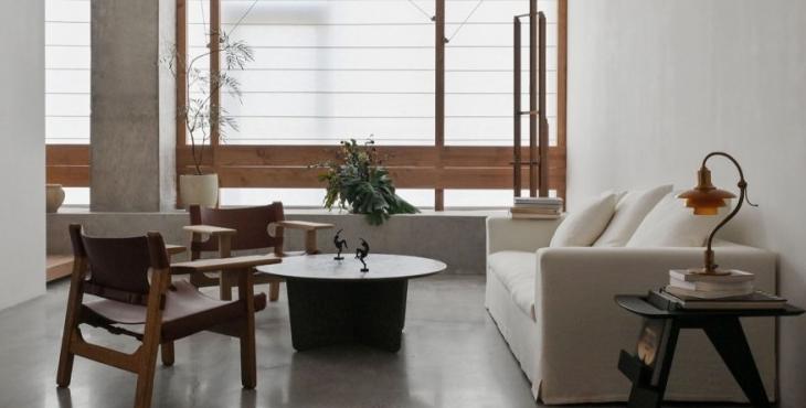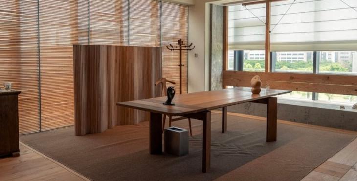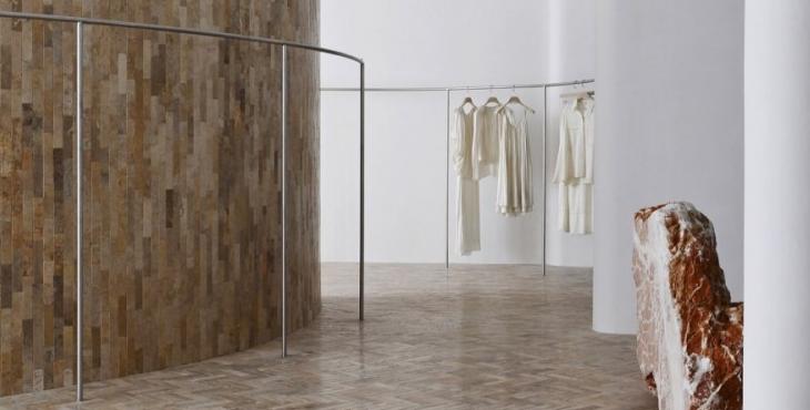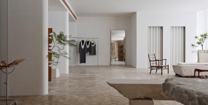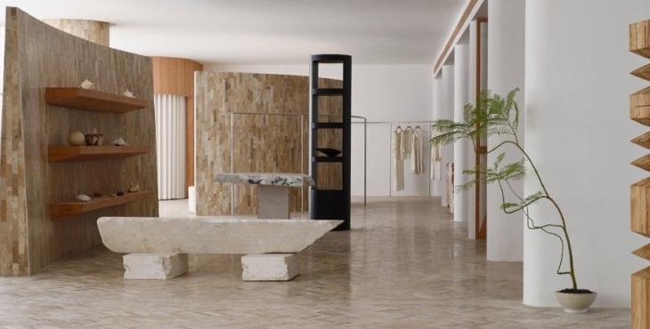 在材料上,鑲嵌在地面的來自海洋的貝類、直接從石場(chǎng)拉來的石方、北美松木清新的香氣,呼應(yīng)著這個(gè)塑造“自然的形狀”的服裝品牌的質(zhì)地。這些設(shè)置有利于有效率的工作和放松下來兩種狀態(tài)并存。我們希望它既能為工作提供便利性,但當(dāng)你放松下來,這個(gè)辦公室又是一個(gè)令人感到舒服的地方。