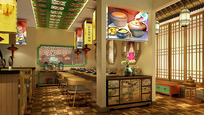 韓式特色餐廳過道設計:若是沒有韓文的出現,相信我們會感覺到很深的中式文化,由此可以看到這是中國文化的一個變種和延伸,這里的環境讓人感受到唯美香濃,環境寬敞舒適。