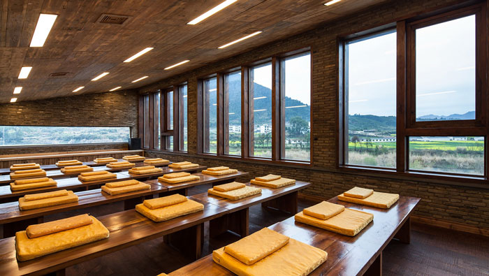 廠房走廊裝修設(shè)計(jì):古色古風(fēng)的建筑,加上外界的自然風(fēng)景,為整個(gè)廠區(qū)帶來(lái)了不一樣的感覺(jué),這里既可以保證空間的通行,同時(shí)也可以站在這里欣賞外界的美景,一舉兩得。