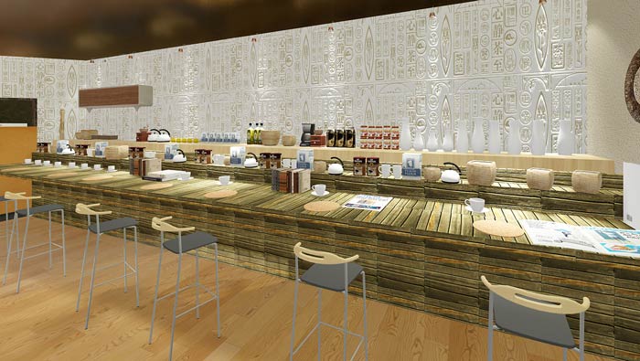 自助茶餐廳餐區(qū)設計:茶水、飲料、糕點、咖啡無一不備,這樣做是為了做到有效的融合,每個人的口味、愛好皆不同,業(yè)主要做的就是捕捉最大的公約數(shù),以此滿足各類客戶。