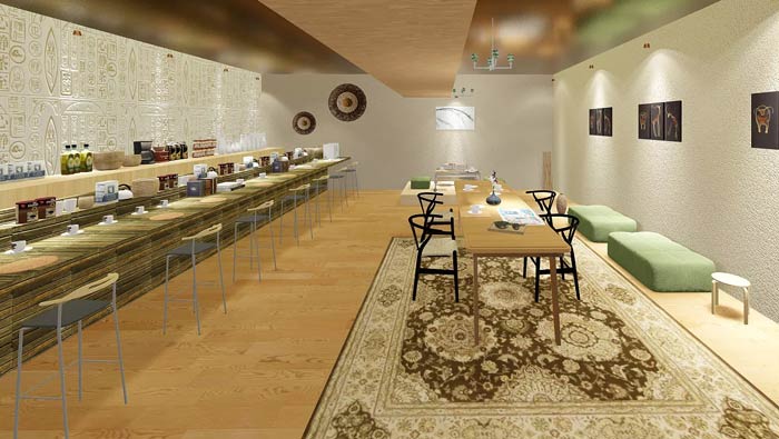 自助茶餐廳桌椅設計:在業(yè)主看來,不管喝的是什么,但心境尤為重要,在景區(qū)內(nèi)客戶得到的是大自然的饋贈,在這業(yè)主希望為打造一個純潔無垢的空間,讓客戶在這里得到心靈的饋贈。