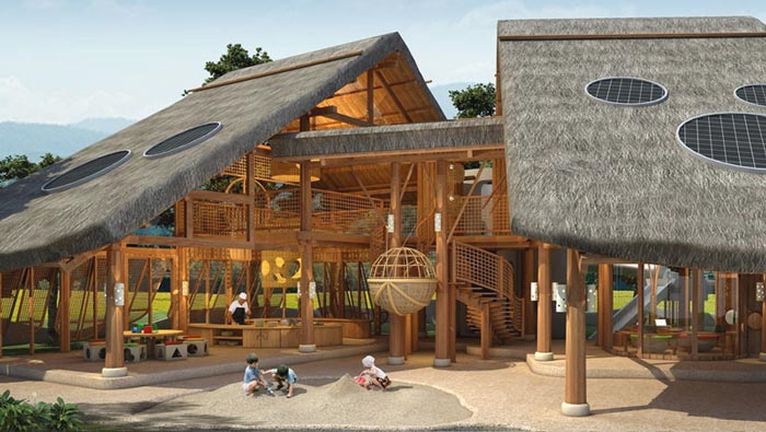 酒店后院的設計:設計師在此處開辟出一塊供小孩子玩耍的場所,經過設計師的調查發現,旅游者大多都會帶著自己的孩子,故此此處就是為了滿足孩子的玩耍,讓孩子在這里盡情的玩耍,去體會與自然之間的關系,讓被鋼筋水泥困住的孩子們,可以去追尋自然地美。