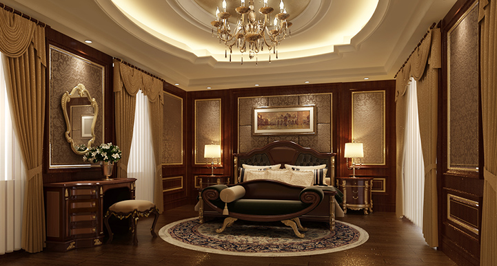 設計理念:本案的設計似乎每一處都能給人豪華大氣的感覺,深色咖啡色的搭配,每一處都散發著刺激人心靈的大氣豪情。尤其是弧線形輪廓與新古典的結合,重點部位咖啡色的完美搭配,呈現出來的大氣豪華,讓人感受心靈的升華。