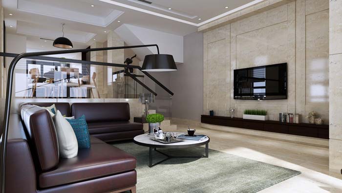 設計師在別墅室內空間設計的時候,打通建筑多余隔墻,讓室內的空間通透靈動。