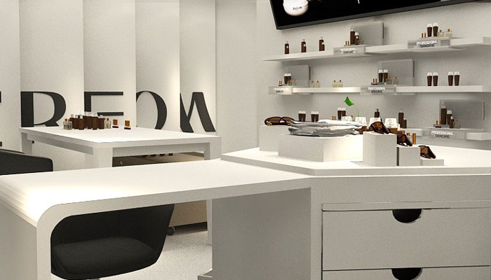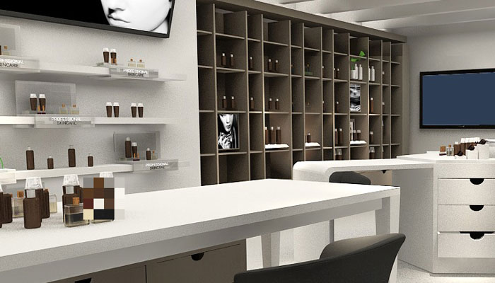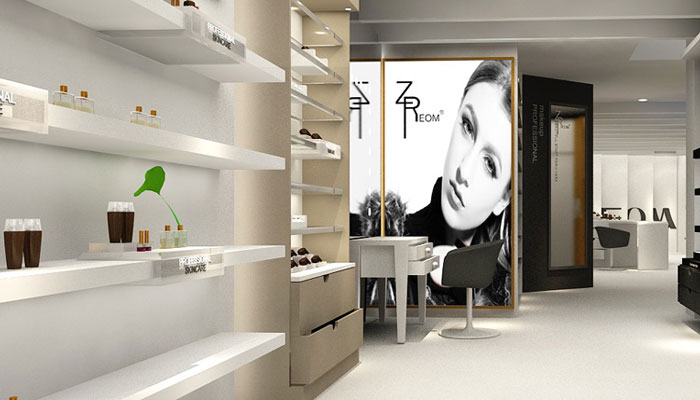 設計理念:考慮到化妝品行業的不同,設計師在和業主交換完想法之后,就把空間的大體顏色定為白色,在長期的設計生涯中設計師感覺白色的特質用在這里會非常的合適。因為白色是一種包含光譜中所有顏色光的顏色,通常被認為是“無色”的。白色的明度最高,無色相??梢詫⒐庾V中三原色的光:紅色、藍色和綠色,按一定比例混合得到白光。光譜中所有可見光的混合也是白光。這個顏色在當下代表純潔。在這種氣質的帶動下,感覺空間都生了一個檔次一般,因為其客服的獨特性,讓進入店內的美女們,會更加的自信,感覺像是進入童話般的世界一般,讓美女心中不知不覺中為空間感到迷醉,在迷醉的同時,為化妝品像是披上了一層神秘的面紗,神秘才會引起人的好奇,好奇就是購買的一個良好的開端。