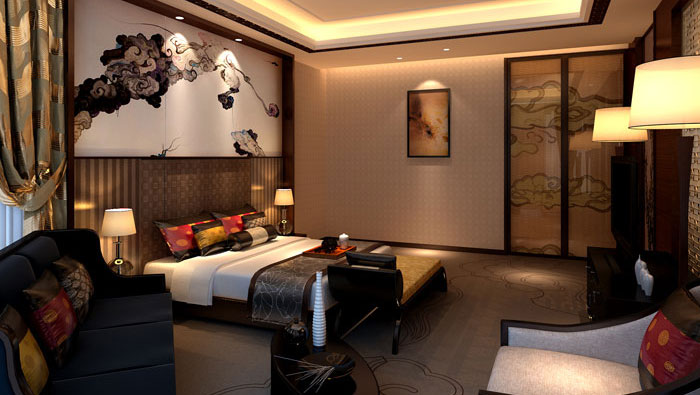 設計理念:室內設計中,設計師將古典的壁畫與現代的吊燈與低垂的竹簾處處協調,將濃重的顏色宣泄到底,張揚到極致,其結果反而出奇的和諧,紅和金的富麗感無可匹敵,也讓人盡情沉醉于中國風的視覺盛宴中。