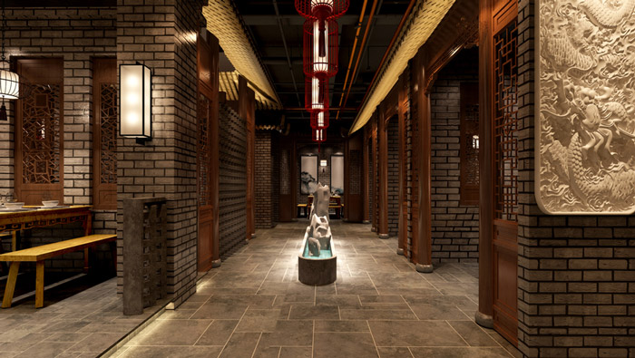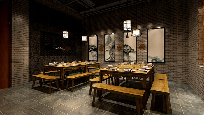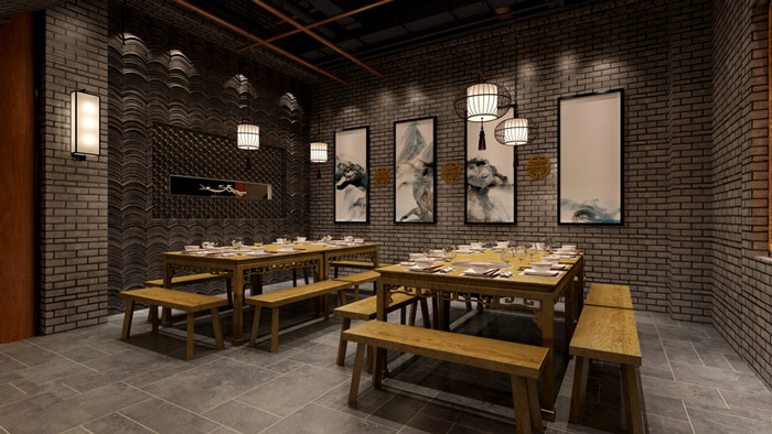 本次為火鍋店裝修設(shè)計效果圖,設(shè)計師在火鍋店設(shè)計中,融合了當?shù)靥厣⑴c便捷的動線系統(tǒng),目的就是希望打造一個眼前一亮、留下深刻印象的火鍋店設(shè)計方案。
