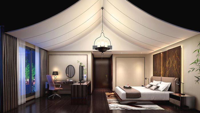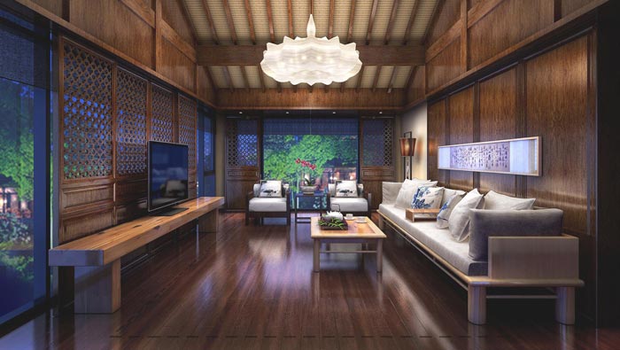 本次為度假精品酒店裝修設計項目,設計師在剛接觸此處項目的時候,認為此次設計是度假型的酒店設計,但是在與客戶的交流中設計師改變了原有的想法,因為客戶希望空間能夠同時兼容度假型與精品型,目的就是希望讓顧客在感受到度假氣息的同時,也可以在細節上感受到酒店的服務。
