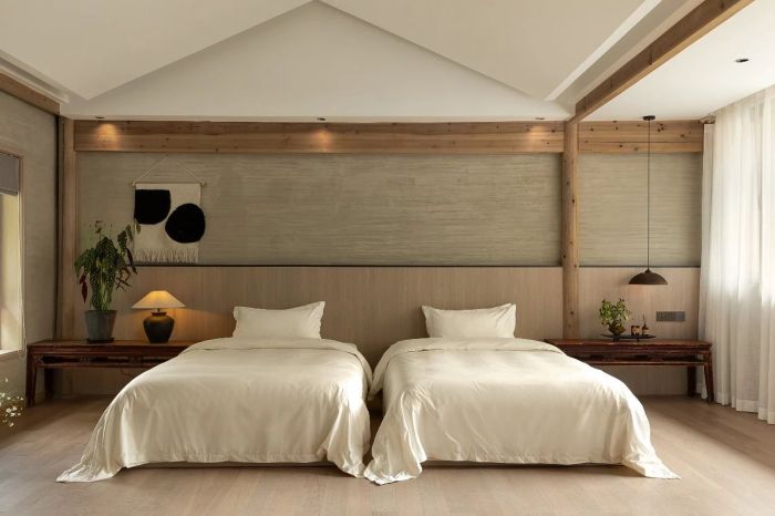秉持著對自然的崇敬之情,俯瞰整個民宿空間,以中間的一片方形水池卡座散開,對應著傳統“天圓地方”的概念,充滿著儀式感。