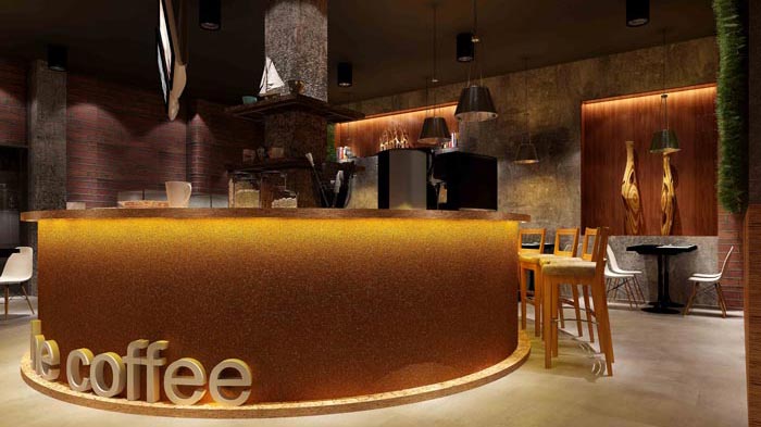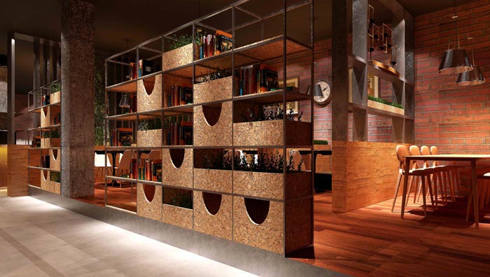 設(shè)計師在咖啡廳設(shè)計的時候,保持主色調(diào)、主體裝飾材料的運用、鋪陳出工業(yè)風(fēng)。