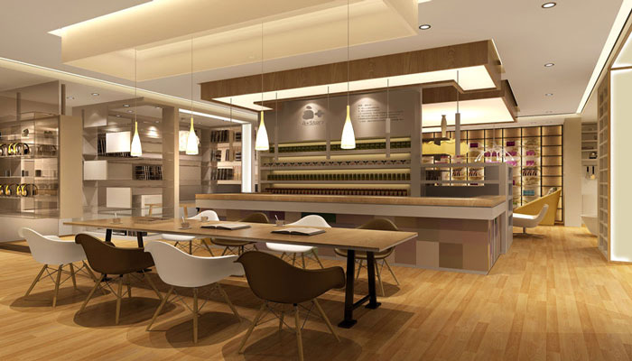 設計理念:設計師在咖啡店面裝修設計的時候,根據自己的理解和業主的需求,決定以金色為主色調。
