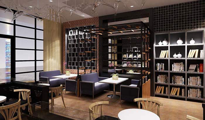 在軟裝設計的同時,設計師根據咖啡館的大小來決定咖啡桌,已達到與空間大小的配合,避免出現小空間配大咖啡桌,或者大空間配小咖啡桌。