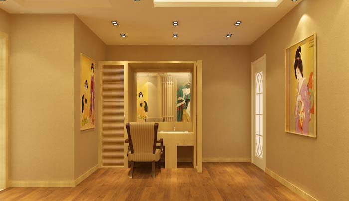 東南亞的SPA間我們用了較深的木色擦色做漆。并且做了東南亞風格的吊頂。
