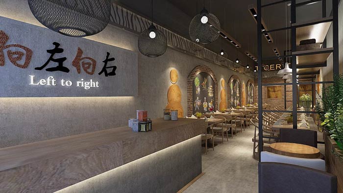 面館進(jìn)門區(qū)左側(cè)裝修設(shè)計:向左向右這正是面館的名字,吃什么選擇權(quán)在客戶手中,面館要做的就是以客戶為導(dǎo)向,將選擇權(quán)留在客戶手中,是希望面館可以越做越好,滿足需求。