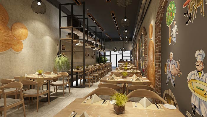 面館空間裝修設(shè)計:整個空間給人的第一感覺,就是簡單、舒適,簡單是指空間井然有序,舒適是空間給人的視覺感受,通過視覺感受傳導(dǎo)到肢體感受,一瞬間讓客戶喜歡這里。