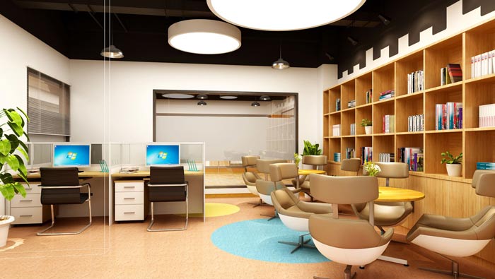 本次為舞蹈培訓機構裝修設計項目,在培訓機構設計之初,設計師通過交流了解到,企業希望設計一個以3到12歲小孩為主的舞蹈教育培訓中心,在勘察現場的時候發現場地是一間兩層建筑,設計師的構想就是在一樓打造一個類似圖書館的閱讀空間,以此吸引家長與孩子的興趣。