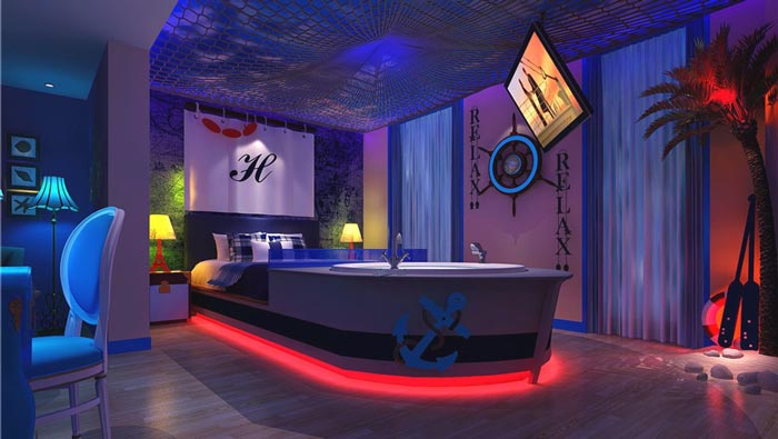 諾曼底號(hào)客房的設(shè)計(jì):相信每一個(gè)人都會(huì)向往星辰大海,但是由于各種原因的限制,要實(shí)現(xiàn)非常困難,故此設(shè)計(jì)師希望將此情此景定格在空間之中,在這樣的空間中欣賞泰克尼克號(hào)的愛情,會(huì)有另外一番感悟,對(duì)于戀人之間有著更大的觸動(dòng),以此讓彼此更加珍惜彼此。