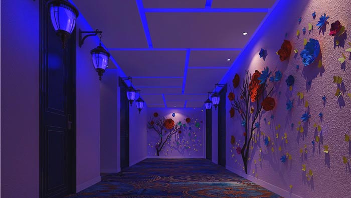 過道的設(shè)計(jì):此次給人的第一感覺就好似夢(mèng)境,仿佛我們都置身在夢(mèng)境之中,在夢(mèng)境之中我們往往會(huì)見到很多現(xiàn)實(shí)中見不到的事物,這也是設(shè)計(jì)師希望給大家的感受,以此讓大家產(chǎn)生期待,為后面的體驗(yàn)埋下伏筆,讓客戶在期待之中去體悟其中的美好。