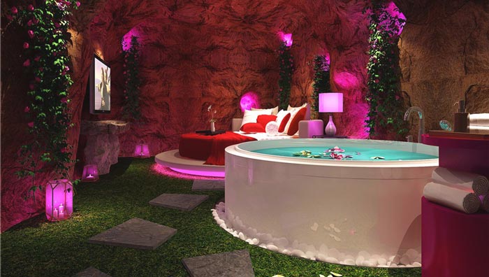 溫泉客房的設(shè)計(jì):別樣的洞房花燭夜,都說人一生一中有兩件大事,就是金榜題名時(shí)、洞房花燭夜,但是這些對(duì)于我們現(xiàn)在的人來說,是那么的陌生、也是那么的向外,相信每一對(duì)戀人都有這樣的期許,設(shè)計(jì)師就是以此情此景為大家?guī)磉@樣的設(shè)計(jì),讓戀人在這里完成一次心靈的升華。