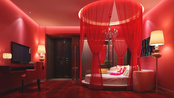 情趣客房的設計:這樣的客房酒店只有2間,主要也是為了嘗試、或者說是試驗,設計師設計的目的也是為了兼具以得,同時設計師也強調這樣的房間不宜過多,由于文化的不同,此處也是在設計師的修改之下完成的,含蓄的美遮蓋住空間原本的含義,讓人更容易接受。