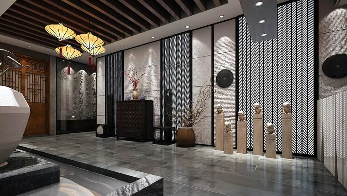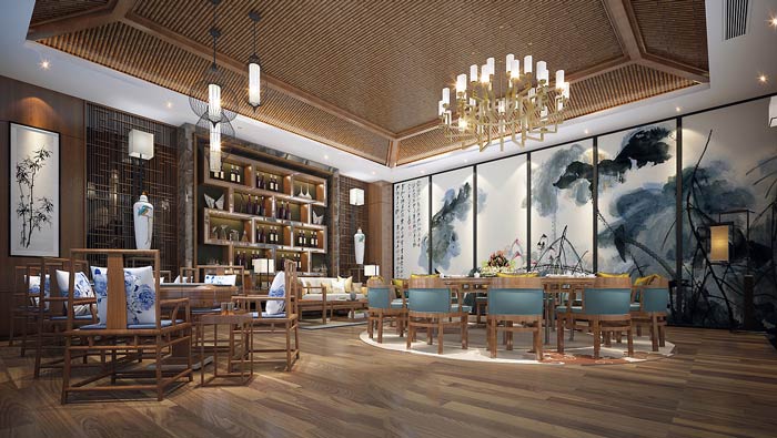 私房菜館客房設(shè)計(jì):這里好似在山水墨畫之中,客戶在山水墨畫之中吃飯,也是一個(gè)不錯(cuò)的創(chuàng)意,這里給人的是一種意境,讓客戶在這里感受到不同,讓客戶在這里感受到畫中的世界。