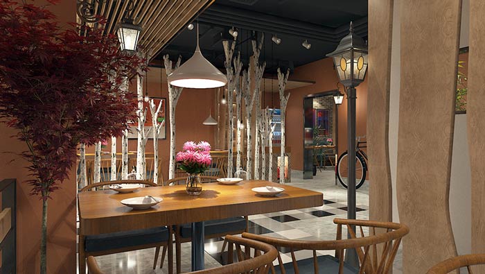 私房菜餐廳裝飾設計:相信通過“大梁自行車”,很多人都會想起一些模糊的回憶,這個時候在看整個空間的裝飾,會不會有不一樣的感覺,這里給客戶一種似曾相識的感覺。