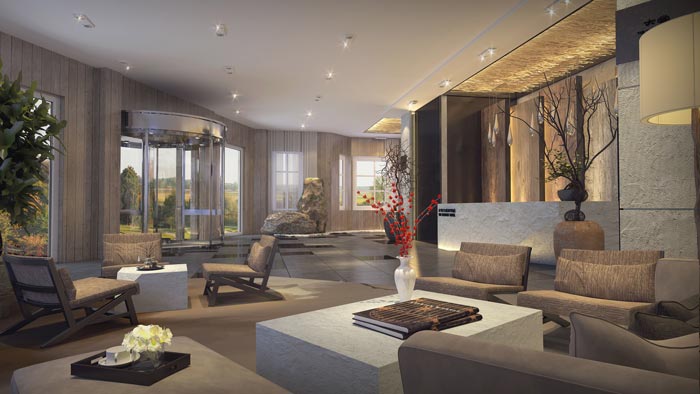 前臺的設(shè)計:對于商務人士來說,有時候休息都是一種奢求,每日忙碌的工作讓我們會有一種身心疲憊之感,故此設(shè)計師在前臺設(shè)計中,加入了自然的元素,讓人在此次感受不到工作的壓力,整個環(huán)境都十分愜意,讓客戶從忙碌的生活中脫離出來。