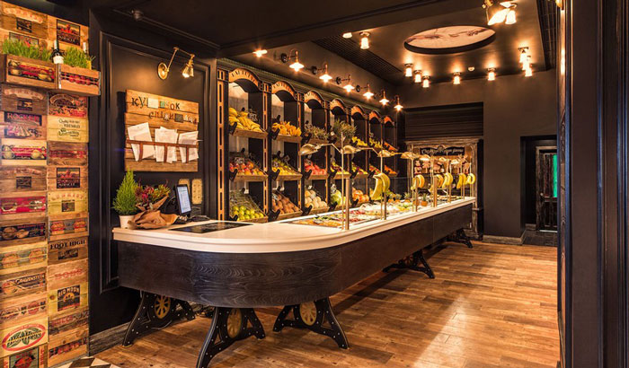 設計理念:復古的設計風格希望能為以健康生活方式為理念的擁護者,打造一個放松舒適俱樂部的氛圍,提供客人新鮮的水果、果汁、沙拉、果醬或是葡萄酒,也希望讓客人了解以水果為主的飲食習慣的優點。