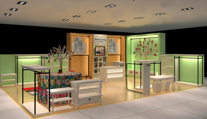 設計理念:設計師根據孩子的天性選擇色彩,根據孩子的特性和品牌來定店面裝飾的色調以及店面內的展示道具和設施的色彩,色彩會對孩子產生很大的影響,因此在店面裝飾時應考慮冷色調,暖色調,中性色調。