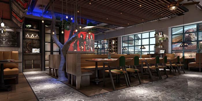 本次西餐廳裝修設計方案講解到此結束,設計師在西餐廳設計中,結合了陸地美味和海洋美味,空間淡淡工業風的味道,也隱喻著現代人們,文藝與不羈的雙面味道,即比喻美味也比喻人生。