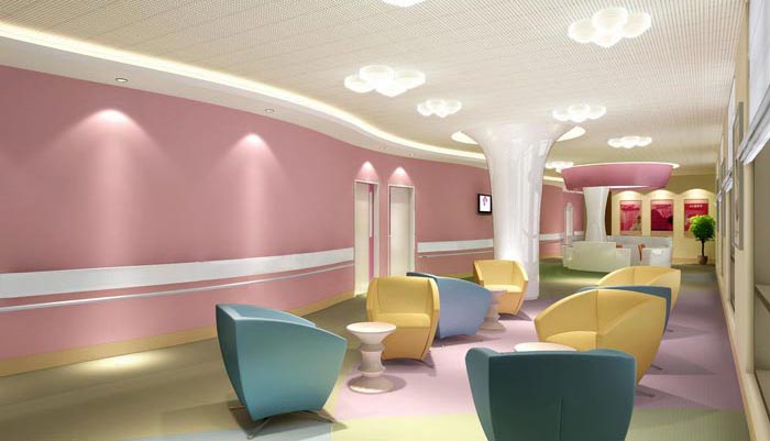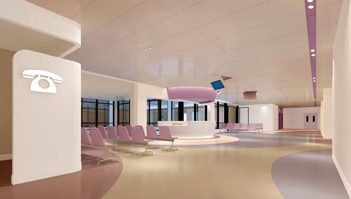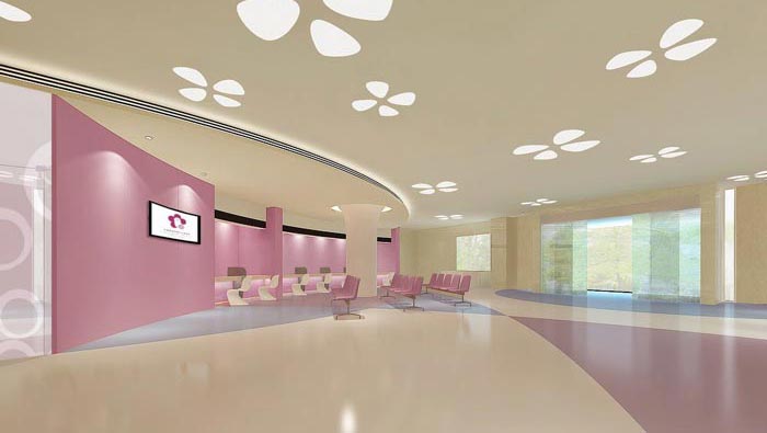 設計理念:婦女兒童醫院裝修設計之初,設計師就不斷吸收建筑設計中“母親懷抱小孩”的理念。