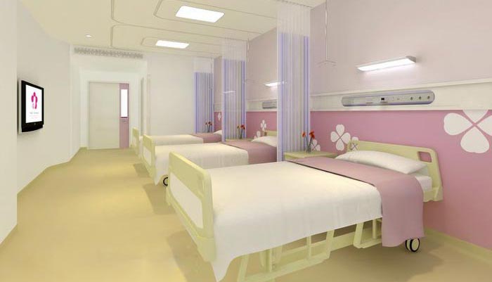 病區設有中高檔床位90張,擁有VIP尊貴病房,設計師為了讓病房家庭化,對病房進行了重點設計,定位于溫馨的病房。