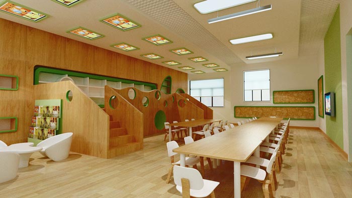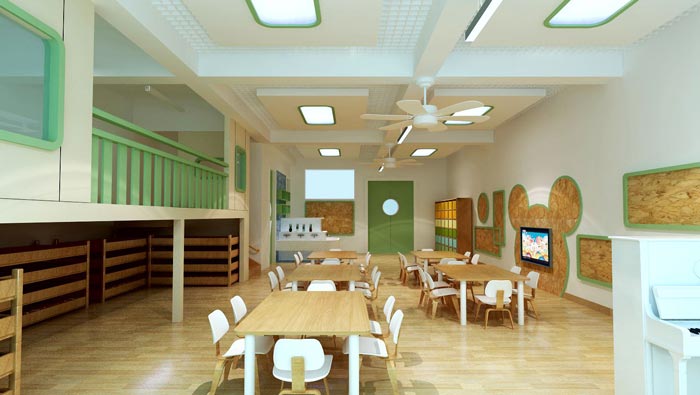 就餐區的設計:在這里孩子們將會享受到美味的佳肴,一個班級的孩子們坐在一起一起用餐,可以培養彼此之間的默契,在就餐結束之后,孩子們可以幫忙收拾餐具,這是要培養孩子動手的能力,在一切都結束之后,孩子們可以坐在一起看自己喜歡的動畫片,這樣的生活羨煞旁人。