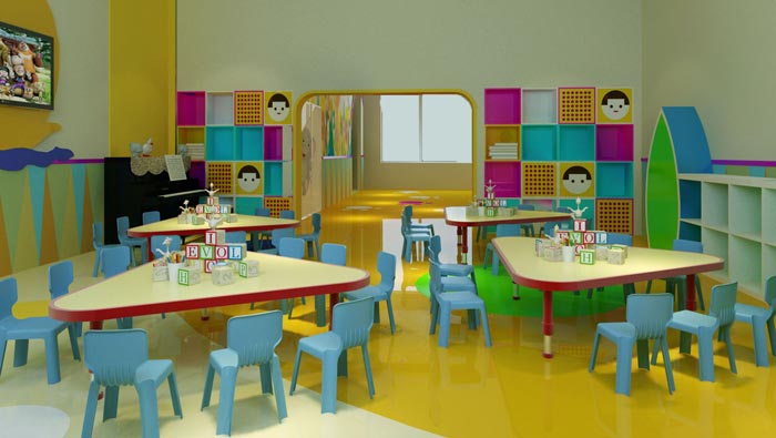 教室的設計:此空間一共可以容納將近20個小孩子,在設計師的想法之中,就是讓他們盡可能的相互聯系,孩子在這個時候正處于交流的初期階段,設計師希望4-6個人為一組,彼此之間相互交流、相互玩耍,這樣做的目的就是讓他們更快的認識對方,以小團體的模式讓孩子盡快的對空間有一個大致的認識。