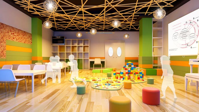 本次高端幼兒園裝修設計案例講解到此結束,室內設計師與室外設計師的終極目的就是希望空間可以融為一體,為孩子提供最最自然的成長環境,回歸到最原始的人類伊甸園中,在這個亦真亦幻地充滿大自然氣息的空間里,孩子們將發現更多的美。