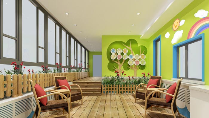 本次幼兒園裝修設計案例講解到此結束,在本次設計中,設計師不僅需要考慮幼兒的感受,同時也要考慮教師的感受,因為帶過孩子的人都知道,帶孩子是很累的,設計師希望設計可以起到緩沖的作用,既能保證孩子們快樂的學習,同時也能給教師一個好的教學環境。