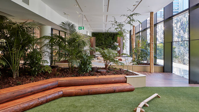 早教中心綠植設計:現在的小朋友已經鮮少能夠見到泥土地了,設計師希望通過綠植室內的栽植,讓孩子回歸自然、回歸先天,讓孩子在這樣的空間中感受到自然的魅力。