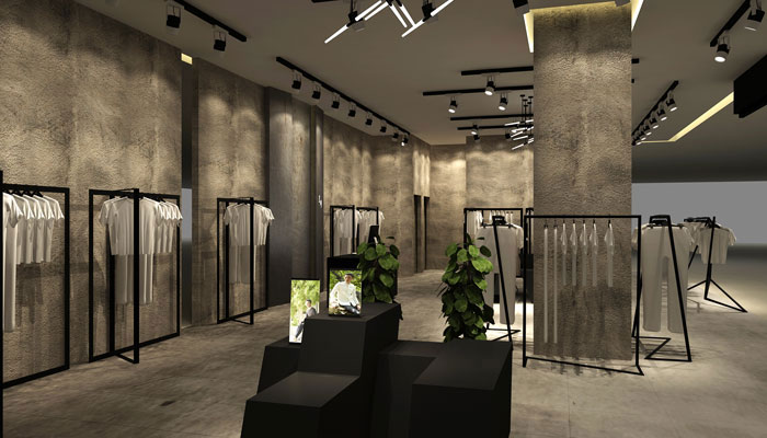 設計理念:設計師在服裝展廳設計初期,經過和業主之間的交流,了解到業主希望可以把展廳設計的有品位是第一訴求。