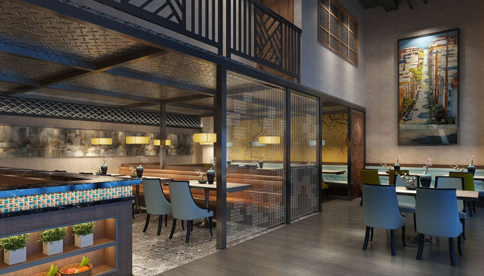 設(shè)計(jì)師希望餐廳室內(nèi)的環(huán)境與氛圍給客人以輕松愉悅,同時(shí)又賦予餐廳高雅、恬靜、并賦予傳統(tǒng)屬性。